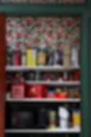 One of the best moments in the kitchen is when you open the pantry to see more wallpaper, although it's actually wrapping paper from Clove & Creek, a shop in Kingston, NY.